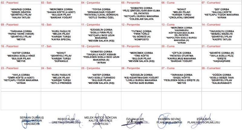 Yemek Listesi